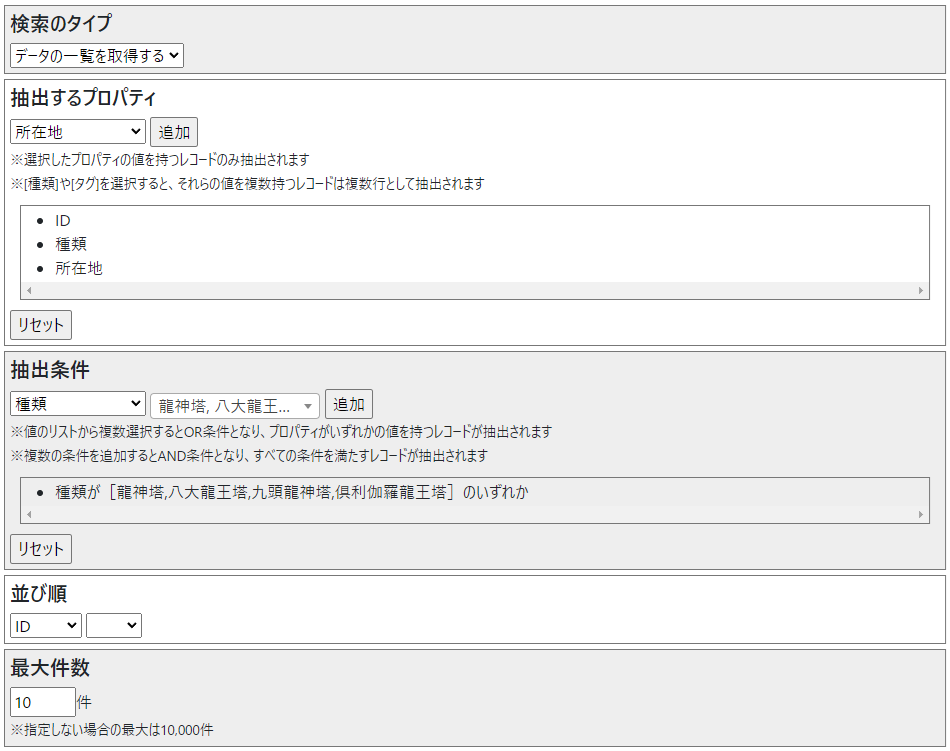 - 龍に関する石造物の一覧を10件取得
