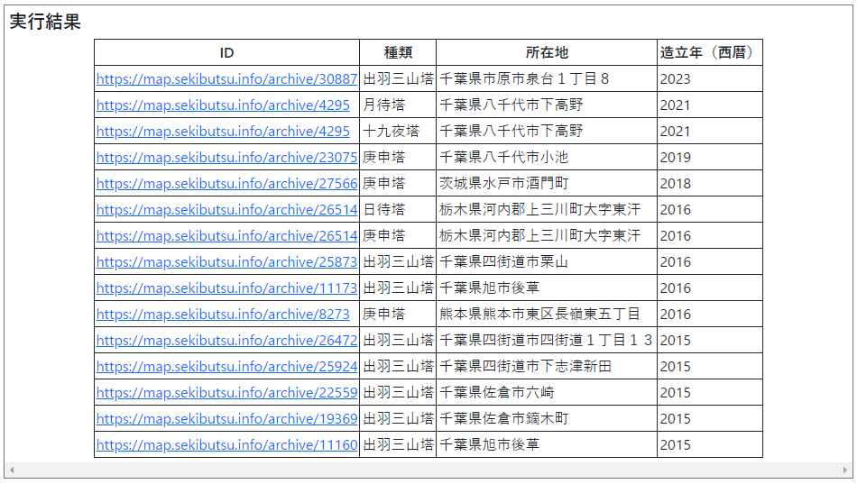 - 2015年以降に造立された石造物の一覧を新しい順に取得